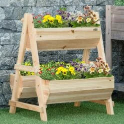 Outsunny Garden Day Rocking Bed Sun Lounger Patio Furniture Hammock With Pillows Wood