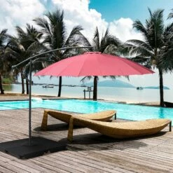 Outsunny UV And Water Resistant Hanging Garden Parasol 3m – Red