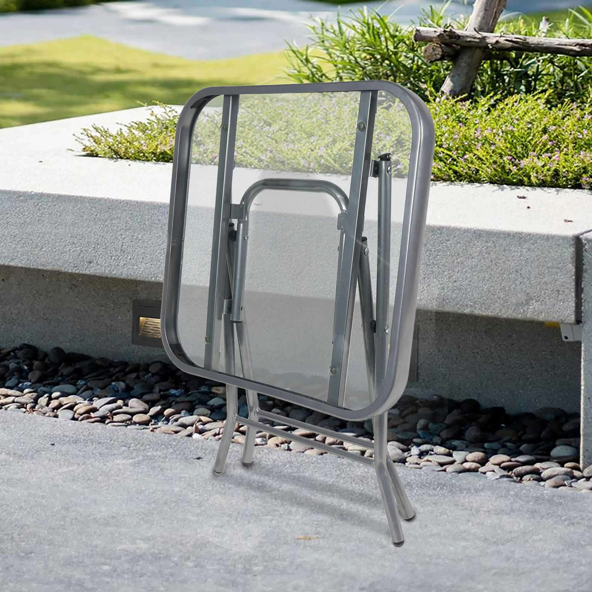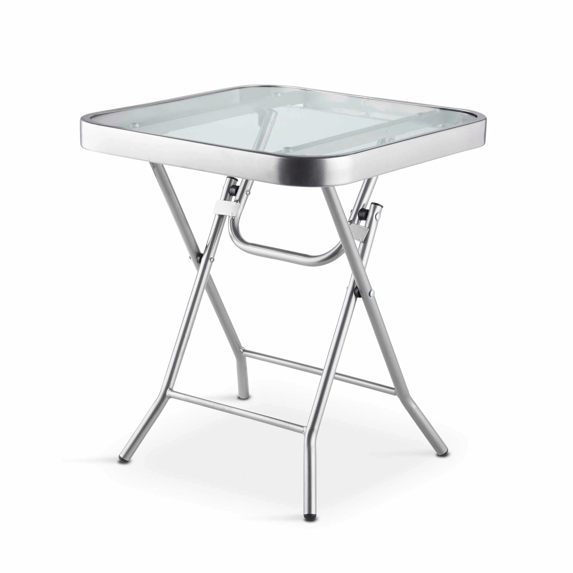 This Folding Side Patio Table has a contemporary design and is easy to move around so it can be placed in your garden on a hot day or taken away on a camping trip/caravan holiday. This folding garden table has a beautiful glass finish and would offer a stylish and sophisticated setting for your drinks at a garden party, family BBQ and special outdoor celebrations. The colour of the folding patio table would also match well with any existing garden furniture you may have. Ideal for the garden or patio and excellent value for money.