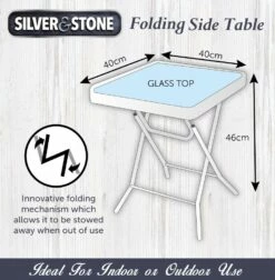 Silver & Stone Folding Side Table With Glass Top 40cm X 40cm X 46cm