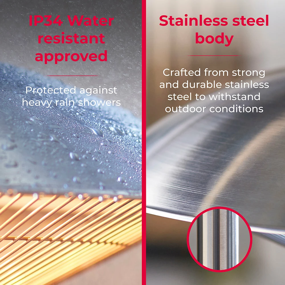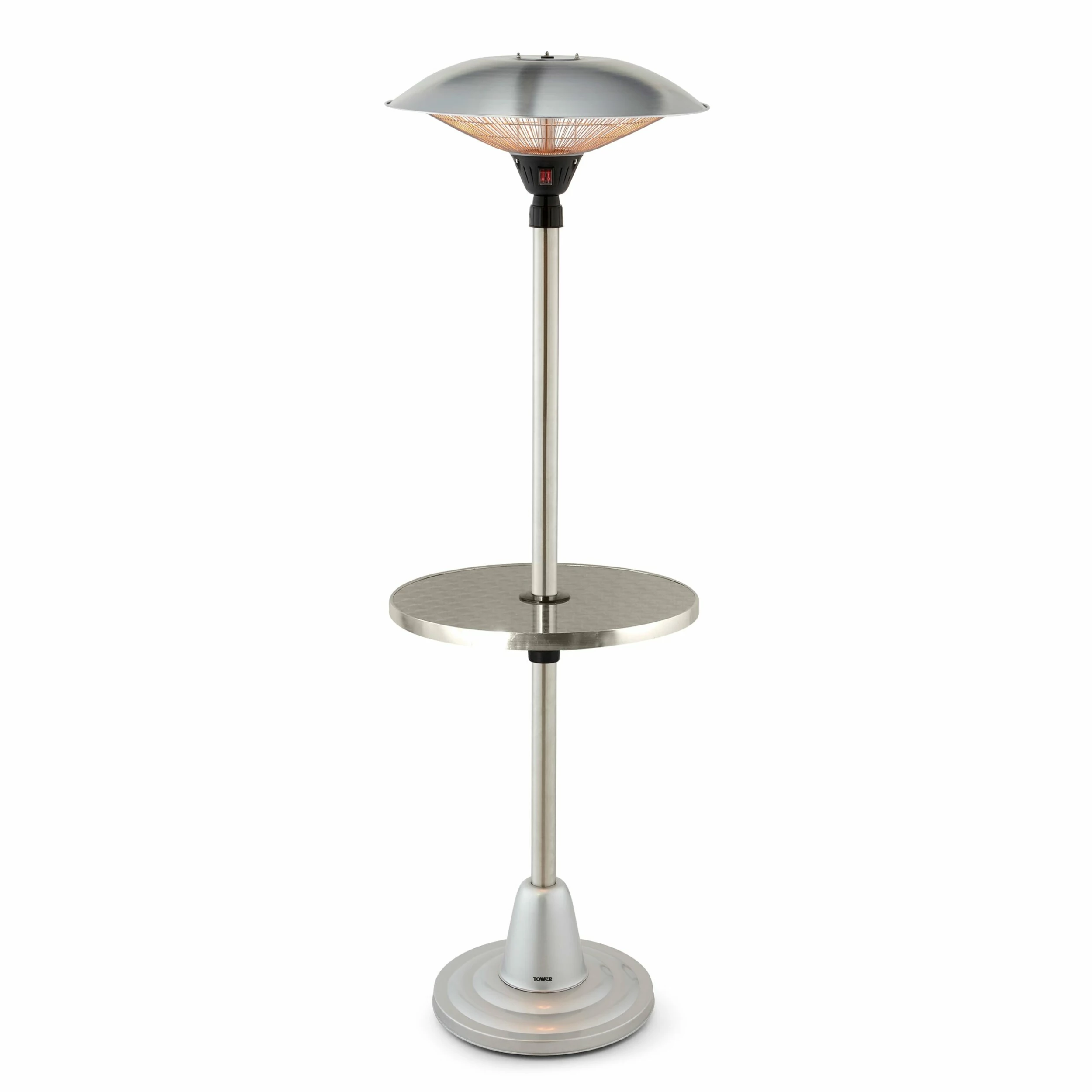 Stay warm in the outdoors all year round with the Tower 2000W Free Standing Patio Heater and Table. The smart halogen heat technology provides 360 heating to keep everyone warm – simply place on your patio, decking or around the garden and enjoy yourself without getting cold. Using the varying power settings, you can stay cosy after a warm summers day or heat up on a chillier evening with friends. Choose from 1000W and 2000W to achieve your desired temperature. For added convenience, this heater features a built-in table for drinks and snacks when entertaining in the garden. Crafted from strong and durable stainless steel, it’s designed to withstand varying outdoor conditions so you won’t need to worry about storing away in heavy rain showers.