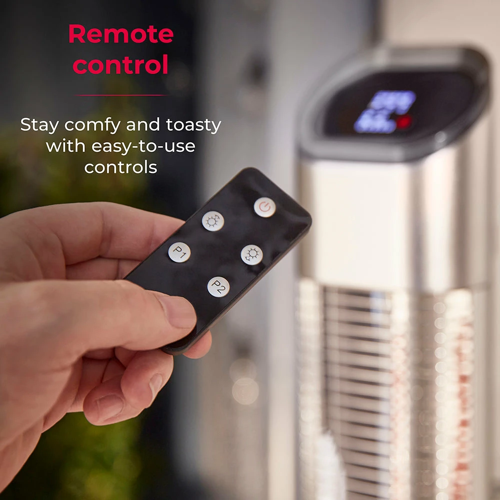 Heat up your space for less with the Tower Wall Mounted Patio Heater. Using smart infrared technology, the heat directly targets you and your guests instead of circulating around the patio, whilst the carbon fiber tube provides a more cost effective way of keeping warm outdoors. Choose between 1000W and 2000W with an additional 9 heating levels to achieve the perfect temperature. Come rain or shine your wall mounted heater will be protected and safe to use, with the highest waterproof rating on the market of IP65. Simply choose your desired spot on the patio wall and attach this heater using the included wall bracket. With powerful heating technology and space saving design, this heater is perfect for a home patio, bars, restaurants and more. And, you can effortlessly operate your heater in comfort using the remote control. Switch it on/off and adjust the heat settings at the touch of a button.